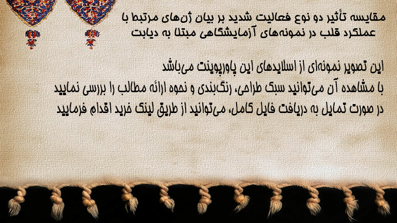 پاورپوینت کامل مقایسه تأثیر دو نوع فعالیت شدید بر بیان ژنهای مرتبط با عملکرد قلب در نمونههای آزمایشگاهی مبتلا به دیابت