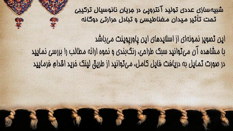 پاورپوینت کامل شبیهسازی عددی تولید آنتروپی در جریان نانوسیال ترکیبی تحت تأثیر میدان مغناطیسی و تبادل حرارتی دوگانه