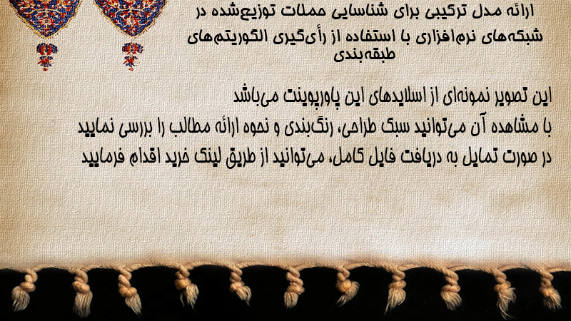 پاورپوینت کامل ارائه مدل ترکیبی برای شناسایی حملات توزیعشده در شبکههای نرمافزاری با استفاده از رأیگیری الگوریتمهای طبقهبندی