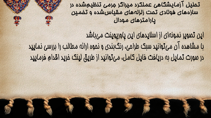 پاورپوینت کامل تحلیل آزمایشگاهی عملکرد میراگر جرمی تنظیمشده در سازههای فولادی تحت زلزلههای مقیاسشده و تخمین پارامترهای مودال