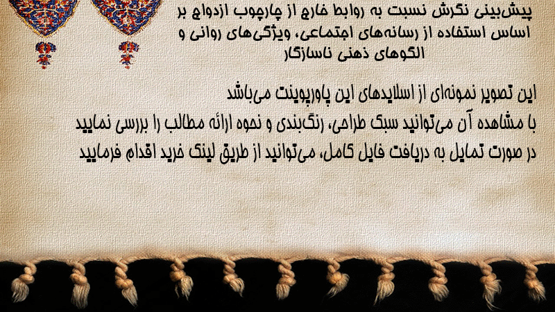 پاورپوینت کامل پیشبینی نگرش نسبت به روابط خارج از چارچوب ازدواج بر اساس استفاده از رسانههای اجتماعی، ویژگیهای روانی و الگوهای ذهنی ناسازگار