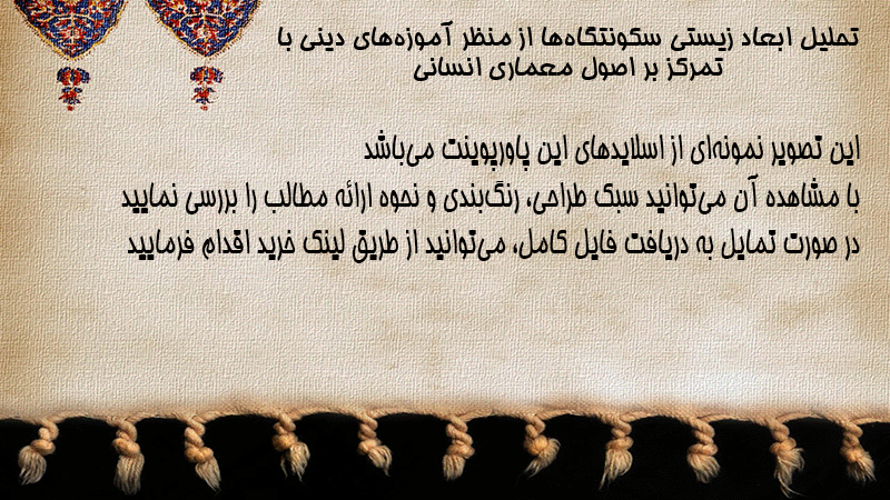 پاورپوینت کامل تحلیل ابعاد زیستی سکونتگاهها از منظر آموزههای دینی با تمرکز بر اصول معماری انسانی
