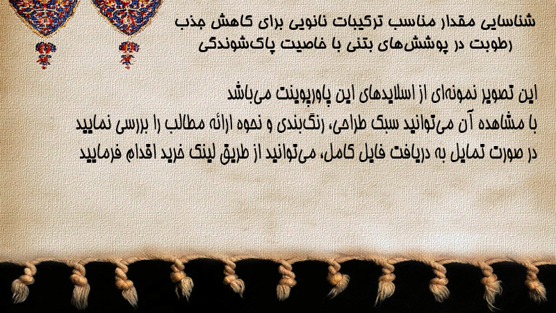 پاورپوینت کامل شناسایی مقدار مناسب ترکیبات نانویی برای کاهش جذب رطوبت در پوششهای بتنی با خاصیت پاکشوندگی