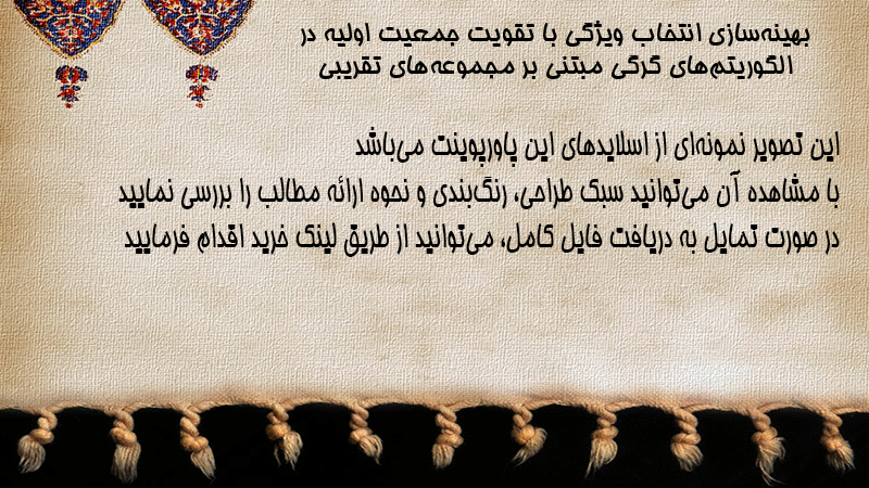 پاورپوینت کامل بهینهسازی انتخاب ویژگی با تقویت جمعیت اولیه در الگوریتمهای گرگی مبتنی بر مجموعههای تقریبی