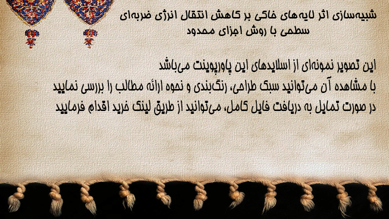 پاورپوینت کامل شبیهسازی اثر لایههای خاکی بر کاهش انتقال انرژی ضربهای سطحی با روش اجزای محدود