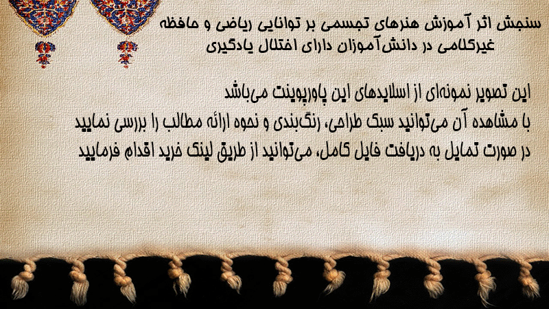 پاورپوینت کامل سنجش اثر آموزش هنرهای تجسمی بر توانایی ریاضی و حافظه غیرکلامی در دانشآموزان دارای اختلال یادگیری