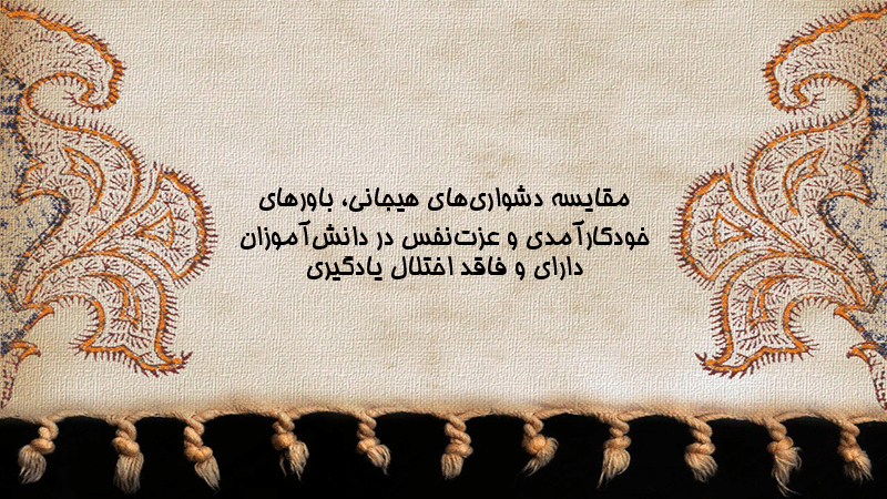 پاورپوینت کامل مقایسه دشواریهای هیجانی، باورهای خودکارآمدی و عزتنفس در دانشآموزان دارای و فاقد اختلال یادگیری