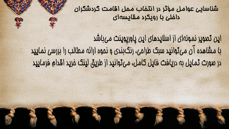 پاورپوینت کامل شناسایی عوامل مؤثر در انتخاب محل اقامت گردشگران داخلی با رویکرد مقایسهای
