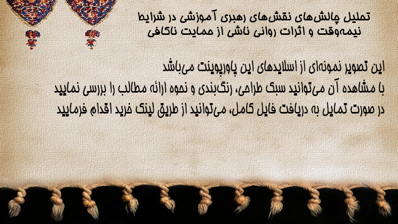 پاورپوینت کامل تحلیل چالشهای نقشهای رهبری آموزشی در شرایط نیمهوقت و اثرات روانی ناشی از حمایت ناکافی