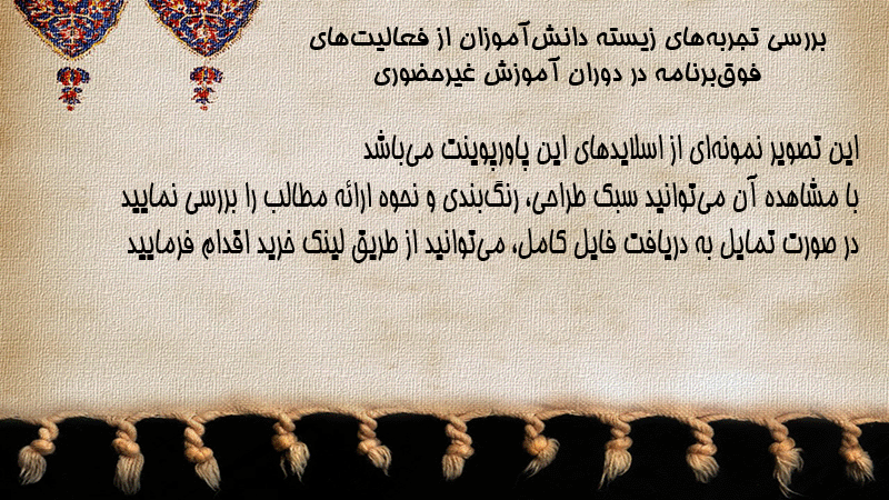 پاورپوینت کامل بررسی تجربههای زیسته دانشآموزان از فعالیتهای فوقبرنامه در دوران آموزش غیرحضوری