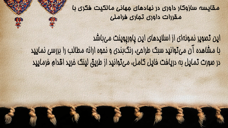 پاورپوینت کامل مقایسه سازوکار داوری در نهادهای جهانی مالکیت فکری با مقررات داوری تجاری فراملی