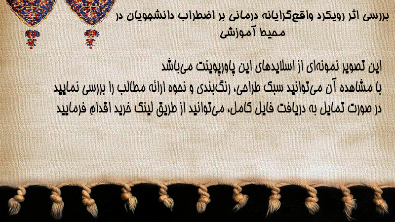 پاورپوینت کامل بررسی اثر رویکرد واقعگرایانه درمانی بر اضطراب دانشجویان در محیط آموزشی