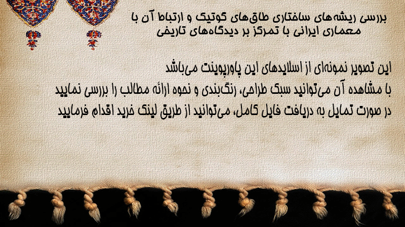 پاورپوینت کامل بررسی ریشههای ساختاری طاقهای گوتیک و ارتباط آن با معماری ایرانی با تمرکز بر دیدگاههای تاریخی