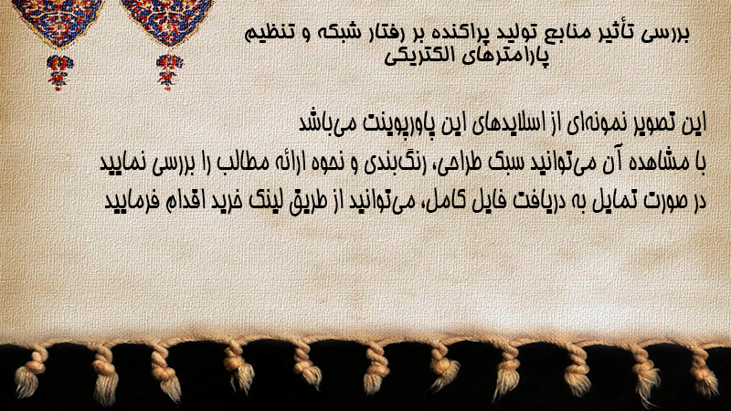 پاورپوینت کامل بررسی تأثیر منابع تولید پراکنده بر رفتار شبکه و تنظیم پارامترهای الکتریکی