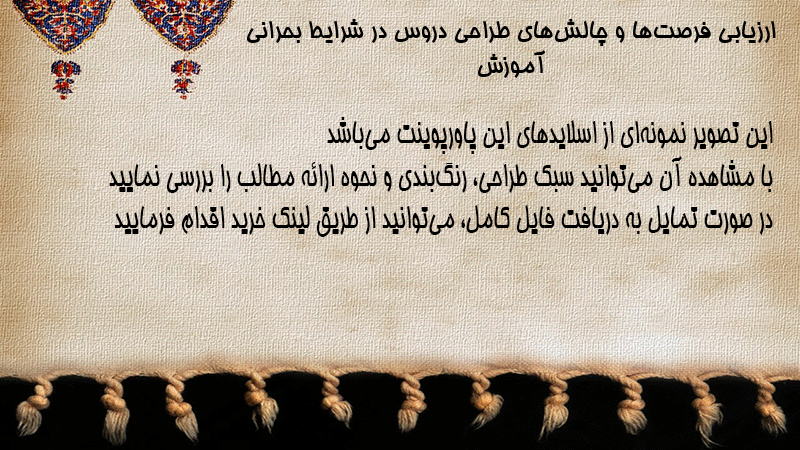 پاورپوینت کامل ارزیابی فرصتها و چالشهای طراحی دروس در شرایط بحرانی آموزش