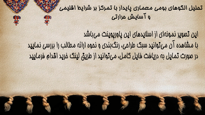 پاورپوینت کامل تحلیل الگوهای بومی معماری پایدار با تمرکز بر شرایط اقلیمی و آسایش حرارتی