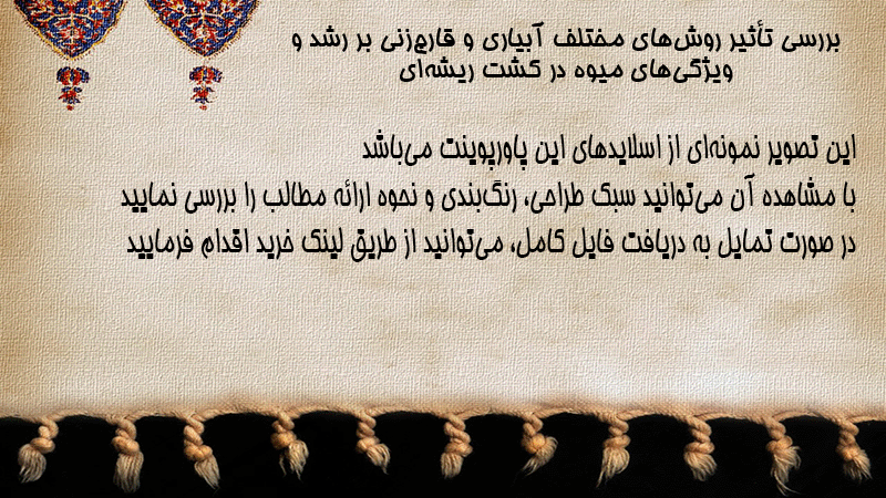 پاورپوینت کامل بررسی تأثیر روشهای مختلف آبیاری و قارچزنی بر رشد و ویژگیهای میوه در کشت ریشهای