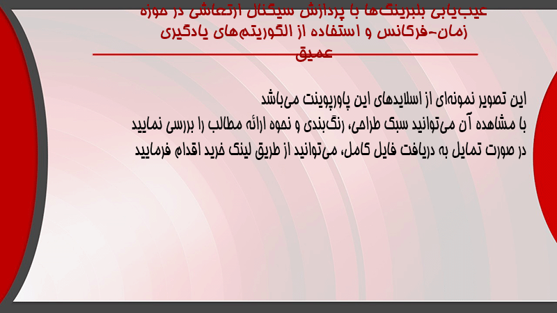 پاورپوینت کامل عیبیابی بلبرینگها با پردازش سیگنال ارتعاشی در حوزه زمان-فرکانس و استفاده از الگوریتمهای یادگیری عمیق