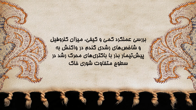پاورپوینت کامل بررسی عملکرد کمی و کیفی، میزان کلروفیل و شاخصهای رشدی گندم در واکنش به پیشتیمار بذر با باکتریهای محرک رشد در سطوح متفاوت شوری خاک