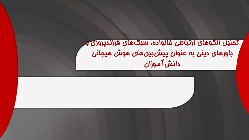 پاورپوینت کامل تحلیل الگوهای ارتباطی خانواده، سبکهای فرزندپروری و باورهای دینی به عنوان پیشبینهای هوش هیجانی دانشآموزان