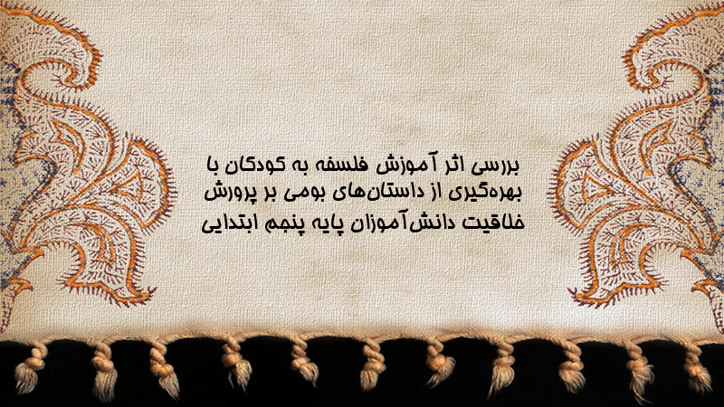 پاورپوینت کامل بررسی اثر آموزش فلسفه به کودکان با بهرهگیری از داستانهای بومی بر پرورش خلاقیت دانشآموزان پایه پنجم ابتدایی