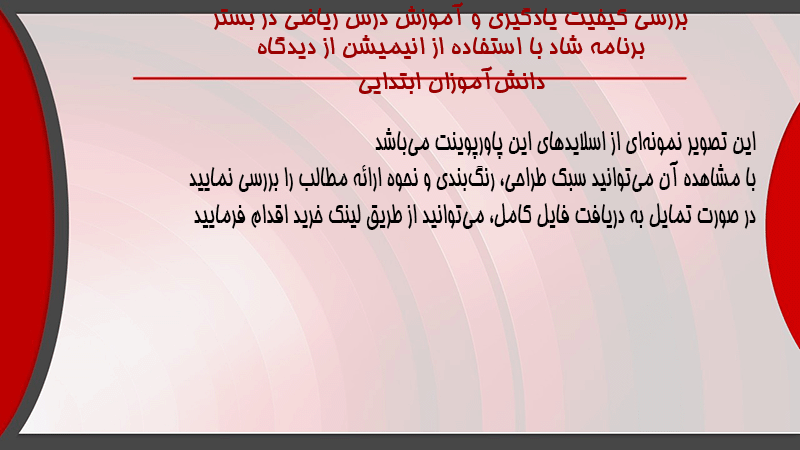 پاورپوینت کامل بررسی کیفیت یادگیری و آموزش درس ریاضی در بستر برنامه شاد با استفاده از انیمیشن از دیدگاه دانشآموزان ابتدایی