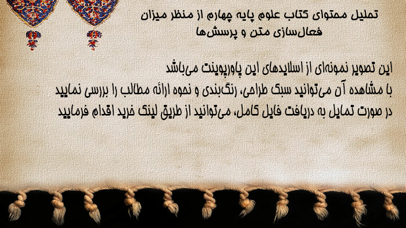 پاورپوینت کامل تحلیل محتوای کتاب علوم پایه چهارم از منظر میزان فعالسازی متن و پرسشها