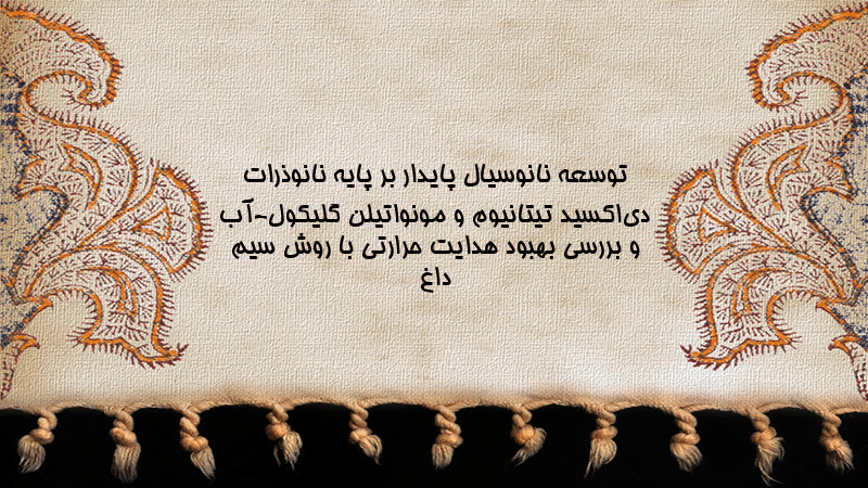 پاورپوینت کامل توسعه نانوسیال پایدار بر پایه نانوذرات دیاکسید تیتانیوم و مونواتیلن گلیکول-آب و بررسی بهبود هدایت حرارتی با روش سیم داغ