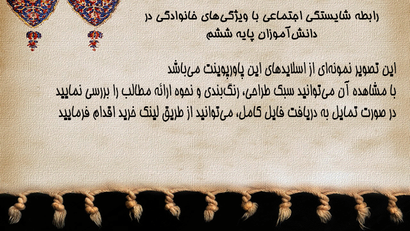 پاورپوینت کامل رابطه شایستگی اجتماعی با ویژگیهای خانوادگی در دانشآموزان پایه ششم