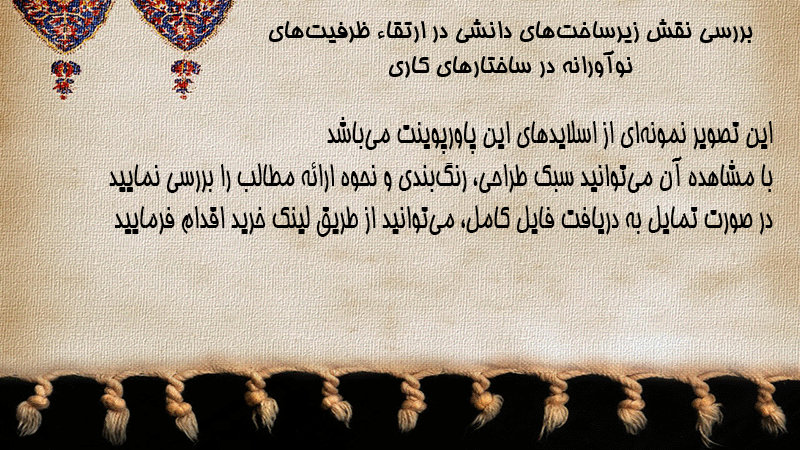 پاورپوینت کامل بررسی نقش زیرساختهای دانشی در ارتقاء ظرفیتهای نوآورانه در ساختارهای کاری