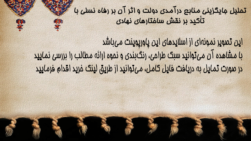 پاورپوینت کامل تحلیل جایگزینی منابع درآمدی دولت و اثر آن بر رفاه نسلی با تأکید بر نقش ساختارهای نهادی