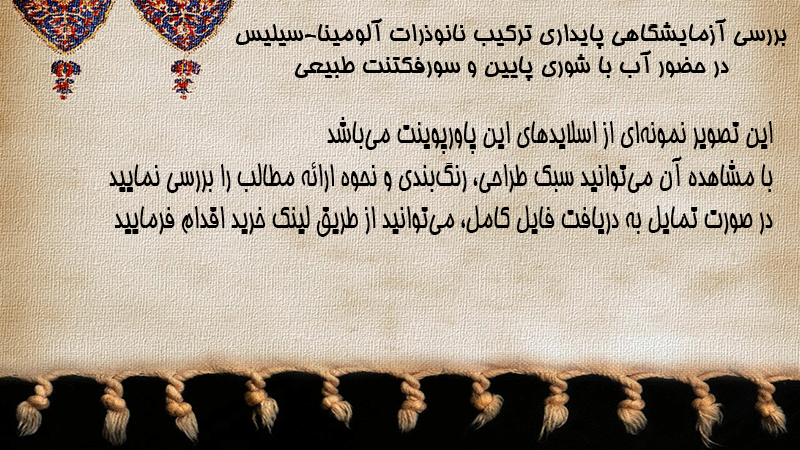 پاورپوینت کامل بررسی آزمایشگاهی پایداری ترکیب نانوذرات آلومینا-سیلیس در حضور آب با شوری پایین و سورفکتنت طبیعی