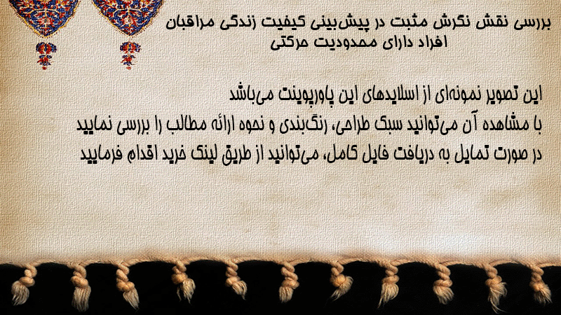 پاورپوینت کامل بررسی نقش نگرش مثبت در پیشبینی کیفیت زندگی مراقبان افراد دارای محدودیت حرکتی