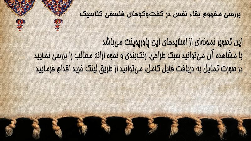 پاورپوینت کامل بررسی مفهوم بقاء نفس در گفتوگوهای فلسفی کلاسیک