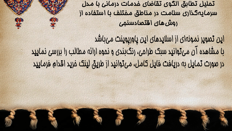 پاورپوینت کامل تحلیل تطابق الگوی تقاضای خدمات درمانی با مدل سرمایهگذاری سلامت در مناطق مختلف با استفاده از روشهای اقتصادسنجی