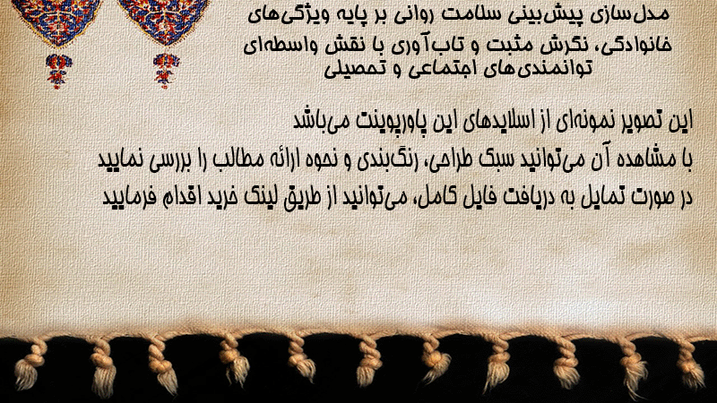 پاورپوینت کامل مدلسازی پیشبینی سلامت روانی بر پایه ویژگیهای خانوادگی، نگرش مثبت و تابآوری با نقش واسطهای توانمندیهای اجتماعی و تحصیلی