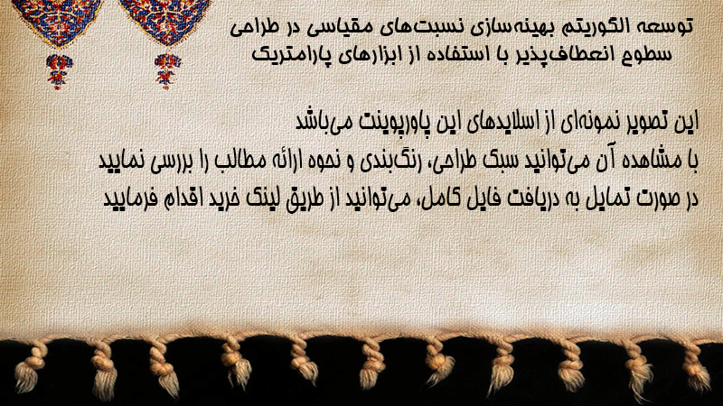 پاورپوینت کامل توسعه الگوریتم بهینهسازی نسبتهای مقیاسی در طراحی سطوح انعطافپذیر با استفاده از ابزارهای پارامتریک