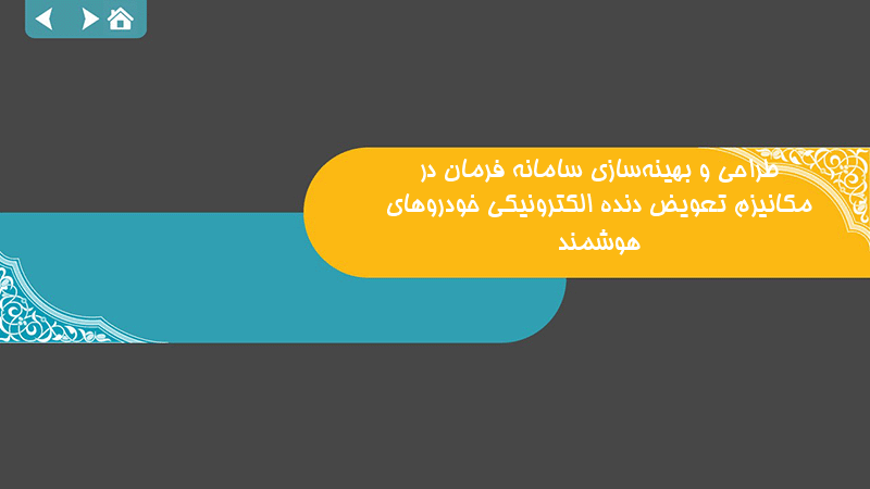 پاورپوینت کامل طراحی و بهینهسازی سامانه فرمان در مکانیزم تعویض دنده الکترونیکی خودروهای هوشمند
