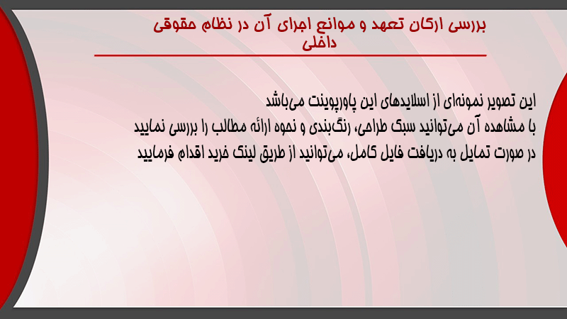 پاورپوینت کامل بررسی ارکان تعهد و موانع اجرای آن در نظام حقوقی داخلی