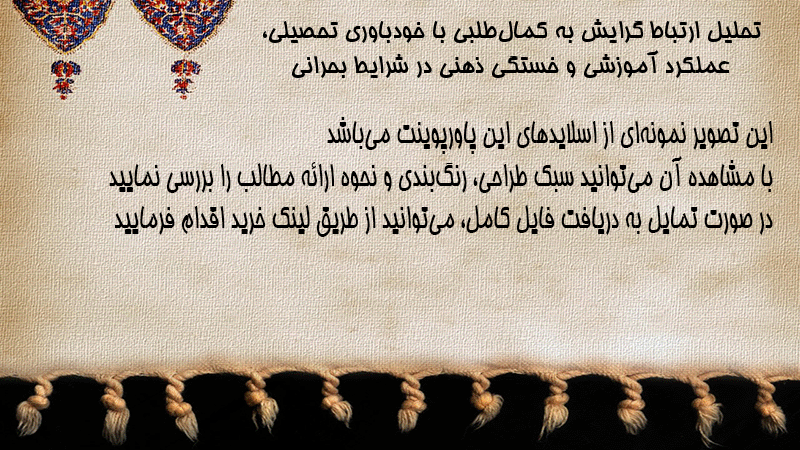 پاورپوینت کامل تحلیل ارتباط گرایش به کمالطلبی با خودباوری تحصیلی، عملکرد آموزشی و خستگی ذهنی در شرایط بحرانی