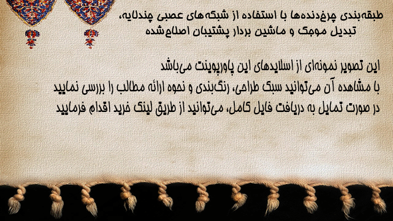 پاورپوینت کامل طبقهبندی چرخدندهها با استفاده از شبکههای عصبی چندلایه، تبدیل موجک و ماشین بردار پشتیبان اصلاحشده