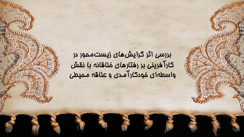 پاورپوینت کامل بررسی اثر گرایشهای زیستمحور در کارآفرینی بر رفتارهای خلاقانه با نقش واسطهای خودکارآمدی و علاقه محیطی
