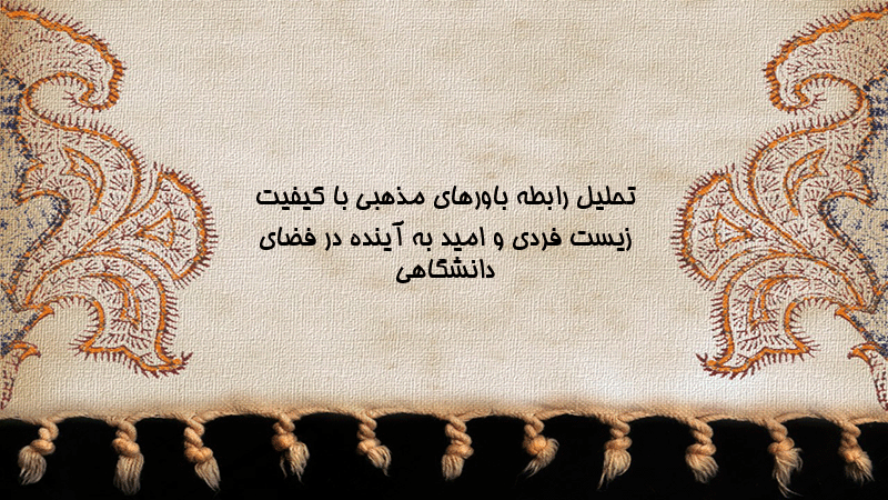 پاورپوینت کامل تحلیل رابطه باورهای مذهبی با کیفیت زیست فردی و امید به آینده در فضای دانشگاهی