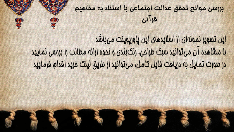 پاورپوینت کامل بررسی موانع تحقق عدالت اجتماعی با استناد به مفاهیم قرآنی