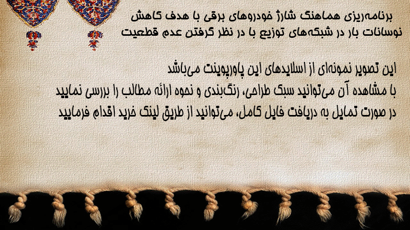 پاورپوینت کامل برنامهریزی هماهنگ شارژ خودروهای برقی با هدف کاهش نوسانات بار در شبکههای توزیع با در نظر گرفتن عدم قطعیت
