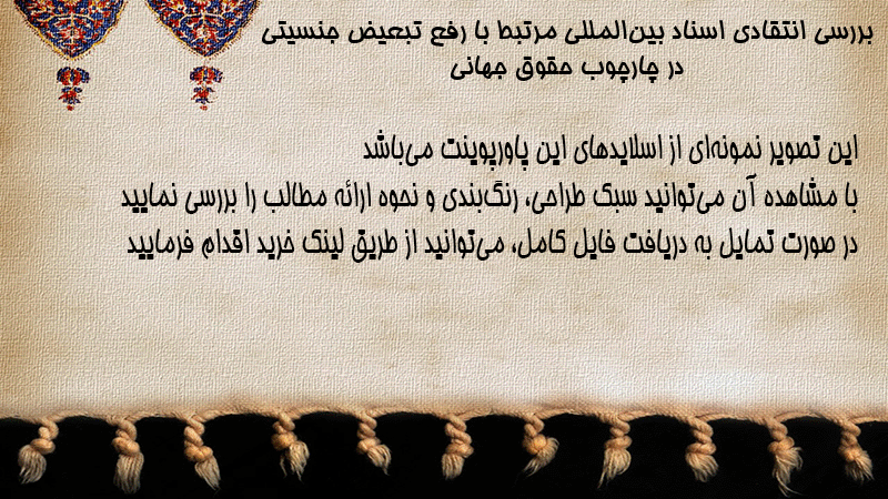 پاورپوینت کامل بررسی انتقادی اسناد بینالمللی مرتبط با رفع تبعیض جنسیتی در چارچوب حقوق جهانی