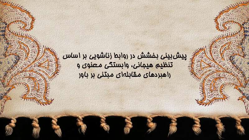 پاورپوینت کامل پیشبینی بخشش در روابط زناشویی بر اساس تنظیم هیجانی، وابستگی معنوی و راهبردهای مقابلهای مبتنی بر باور