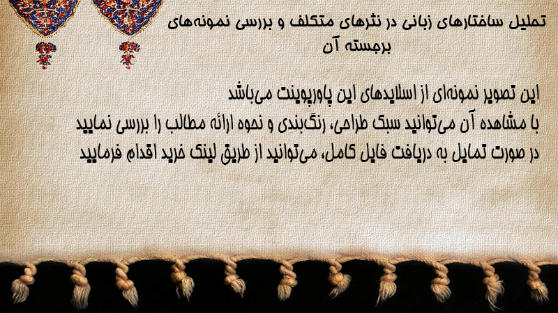 پاورپوینت کامل تحلیل ساختارهای زبانی در نثرهای متکلف و بررسی نمونههای برجسته آن
