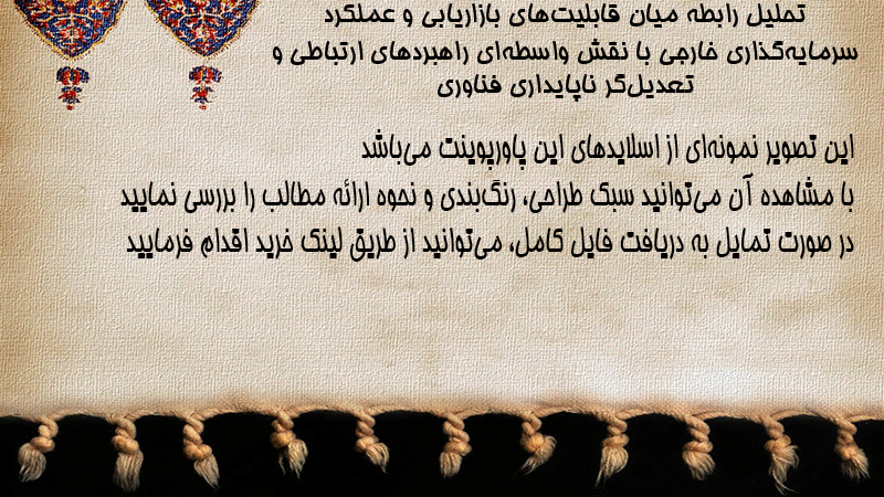 پاورپوینت کامل تحلیل رابطه میان قابلیتهای بازاریابی و عملکرد سرمایهگذاری خارجی با نقش واسطهای راهبردهای ارتباطی و تعدیلگر ناپایداری فناوری
