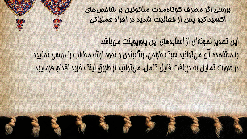 پاورپوینت کامل بررسی اثر مصرف کوتاهمدت ملاتونین بر شاخصهای اکسیداتیو پس از فعالیت شدید در افراد عملیاتی